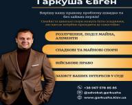 Вітаю! Мене звати Євген Гаркуша, я адвокат із понад 15-річним досвідом у галузі сімейного, цивільного та військового права.