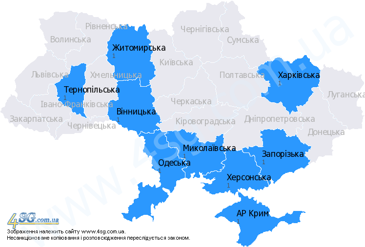 На агрокарті зернотрейдерів відображені області в яких ведеться закупівельна діяльність зернотрейдерами.